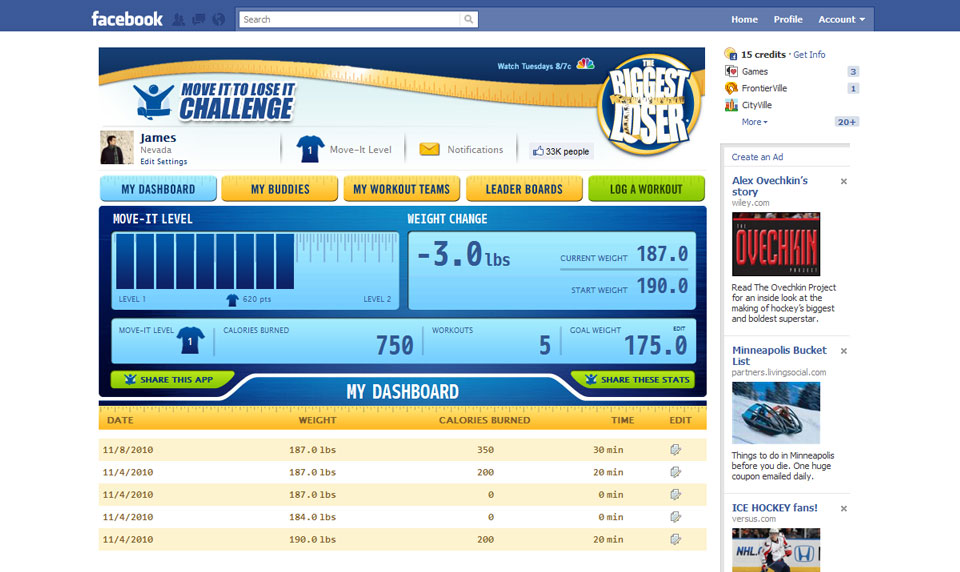 Developed Facebook App for The Biggest Loser. App was part of a marketing campaign for a video game and later for the show itself.